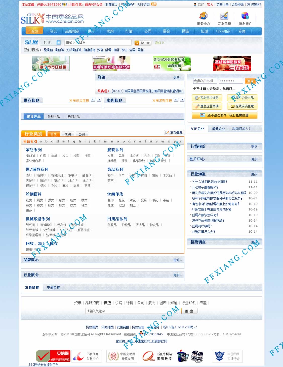 中國蠶絲品網(wǎng)是國內(nèi)具影響力的蠶絲品信息門戶,致力于打造中國最專業(yè)的蠶絲品網(wǎng)上服務綜合服務、交易、交流平臺。為蠶絲、家紡企業(yè)提供一流的批發(fā)、行情、交流、供求信息綜合平臺。