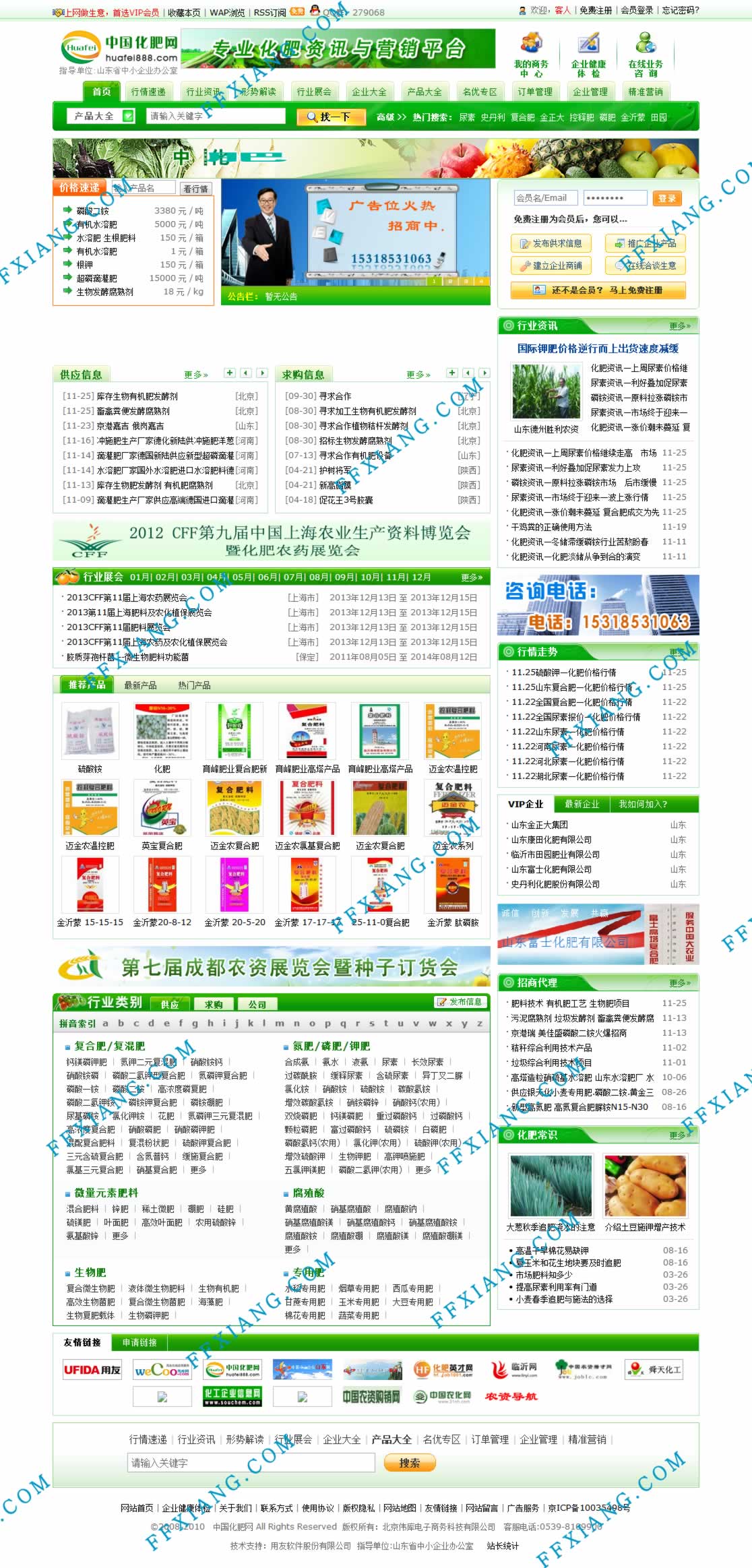 中國化肥網(wǎng)是國內(nèi)領(lǐng)先的全程電子商務(wù)信息服務(wù)機(jī)構(gòu);中國化肥網(wǎng)是集行情速遞、行業(yè)資訊、化肥行情解讀、化肥行業(yè)展會、化肥企業(yè)大全、產(chǎn)品大全、企業(yè)訂單管理、企業(yè)在線進(jìn)銷存管理、企業(yè)在線現(xiàn)金管理、企業(yè)合同管理等諸多企業(yè)營銷和企業(yè)在線管理軟件于一體的大型行業(yè)門戶網(wǎng)站;中國化肥網(wǎng)依托于全國最大的復(fù)合肥生產(chǎn)基地--山東臨沭復(fù)合肥生成基地,為廣大農(nóng)民、化肥代理商提供肥效全、養(yǎng)分高、價(jià)格低的優(yōu)質(zhì)復(fù)合肥信息,建立全國大型化肥生產(chǎn)廠商與廣大農(nóng)民、代理商的溝通橋梁。