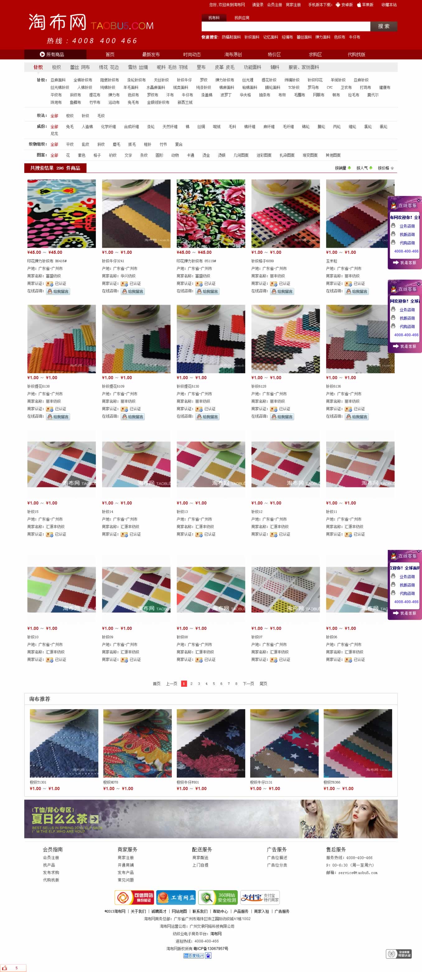淘布網(wǎng)是廣州文承網(wǎng)絡(luò)科技有限公司旗下重金打造的紡織行業(yè)的B2B電子商務(wù)平臺,面向全國開放推廣,以服務(wù)紡織面料為主,旨在通過資源的整合、匯集,打造紡織面料網(wǎng)上專業(yè)營銷市場,為廣大企業(yè)和用戶提供最全最好商貿(mào)信息和紡織品資訊及電子商務(wù)服務(wù)的全方位平臺。