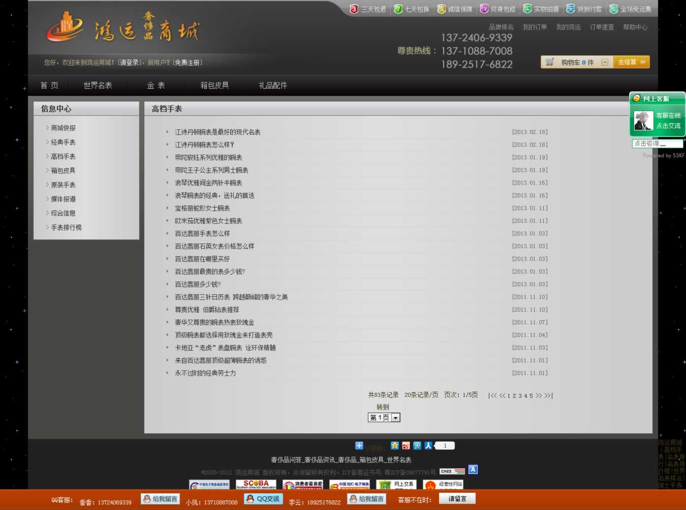 領(lǐng)航時尚潮流,把握最新動態(tài),鴻運(奢侈品)商城開網(wǎng)絡(luò)貿(mào)易之先河,集品牌手表、汽車精品、箱包皮具及精美禮品之名品,誠信為本,至尊品質(zhì),全國范圍支持貨到付款、支付寶付款、財富通付款、銀行匯款等多種付款方式。目前,鴻運(奢侈品)商城處在飛速發(fā)展階段,很多新、奇、特產(chǎn)品正在不斷被開創(chuàng),現(xiàn)誠邀全國各地頂級奢侈品商家,入駐商城,加盟合作,共謀發(fā)展,攜手共創(chuàng)美好明天。