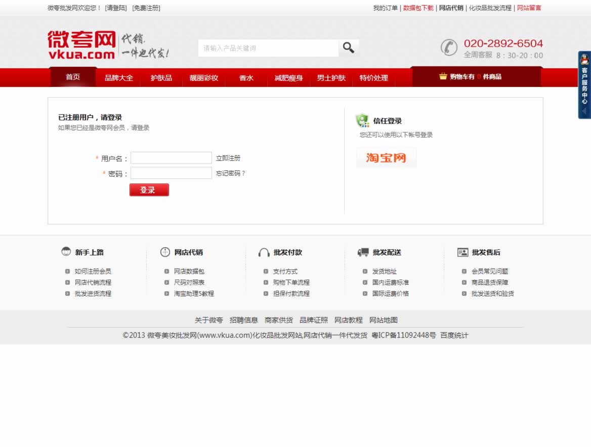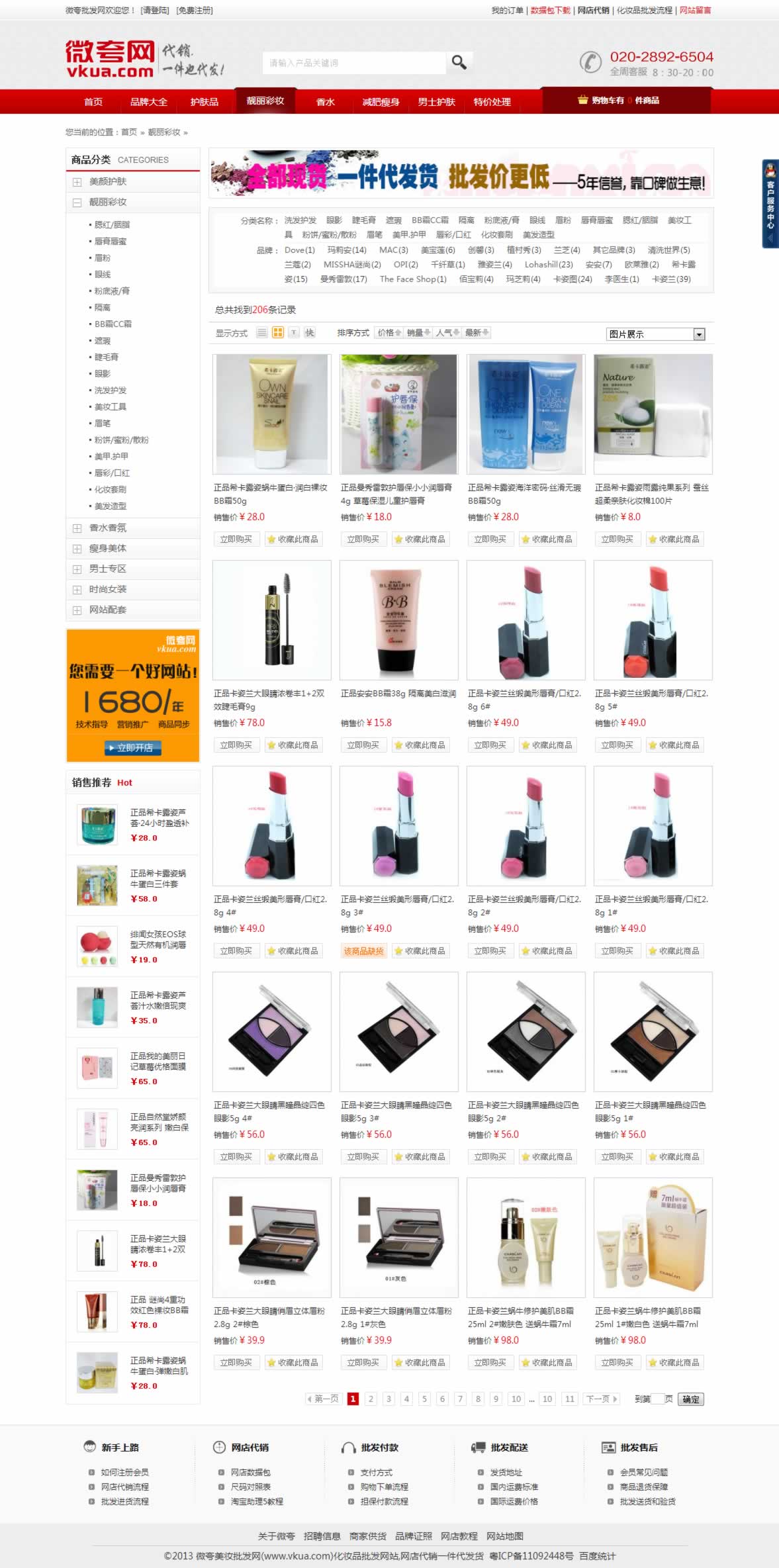 微夸批發(fā)網(wǎng)位于廣州最大的化妝品批發(fā)市場美博城內(nèi),隸屬廣州麥妝貿(mào)易有限公司旗下,從事實體店化妝品批發(fā)多年,為美容院,化妝品店,化妝品超市和終端,淘寶.拍拍.網(wǎng)上商城批發(fā)供應(yīng)各類化妝品, 個人護(hù)理用品.我們致力于打造全國最大最便宜的化妝品批發(fā)網(wǎng),產(chǎn)品每周更新,注冊即可批發(fā),無起批限制.一件代發(fā)貨,支持支付寶,財付通擔(dān)保付款,當(dāng)天發(fā)貨。