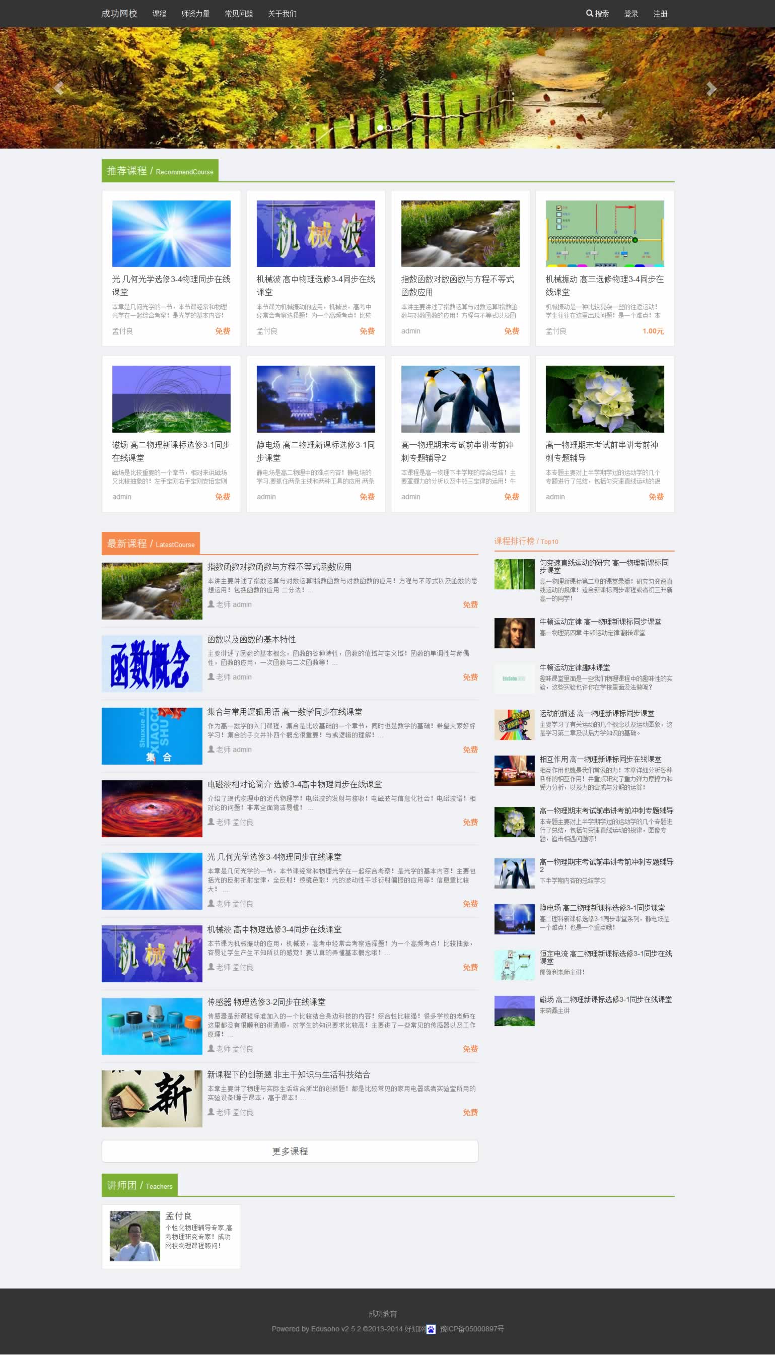 2013年12月網(wǎng)校上線,目前只是整理歸納了物理老師的物理課程!由于幾個老師對于互聯(lián)網(wǎng)不是和熟練,所以導致課程整理進度比較緩慢!