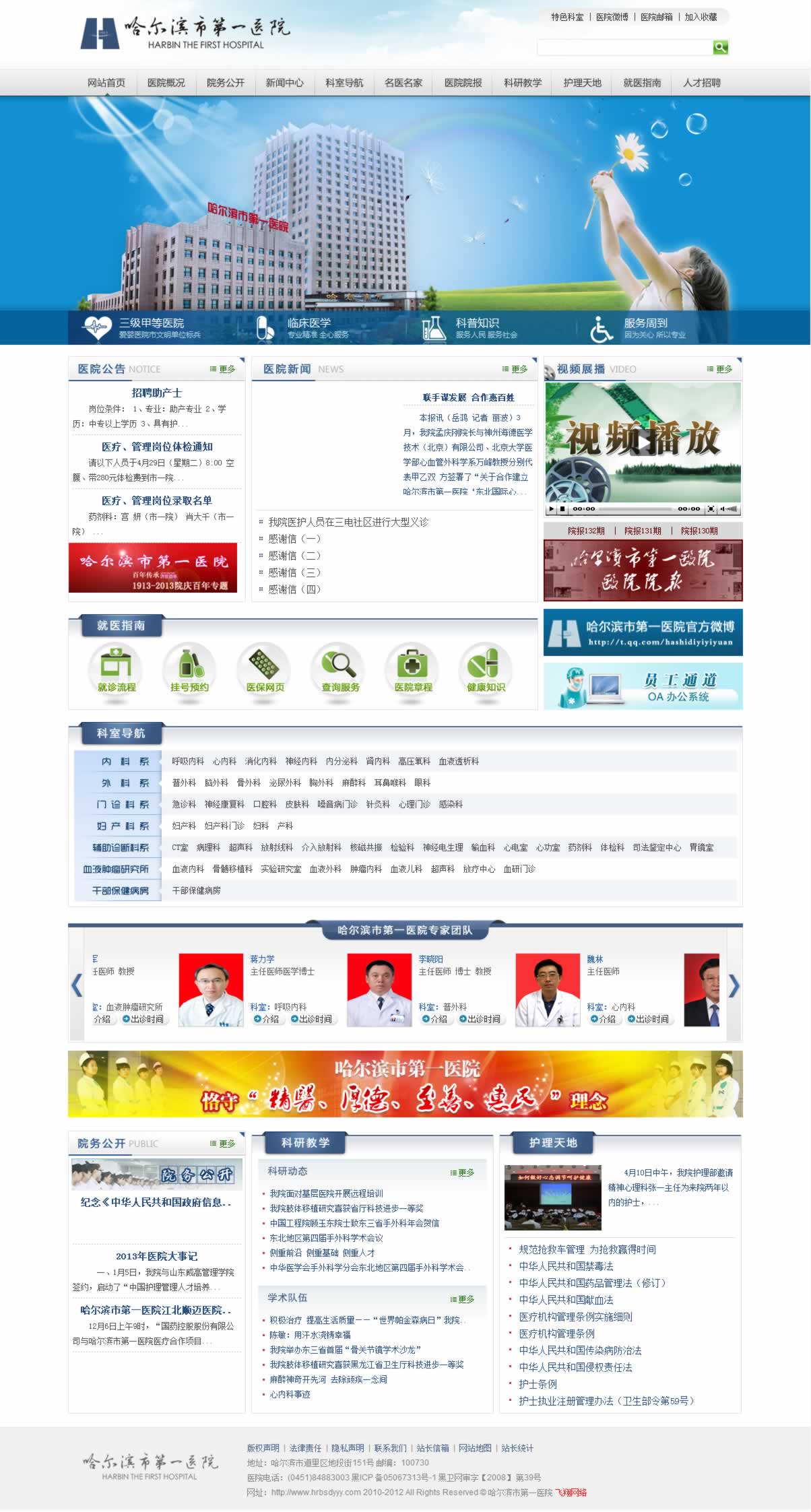 哈爾濱市第一醫(yī)院是哈爾濱市建院時(shí)間最長(zhǎng)、市直衛(wèi)生系統(tǒng)最大的綜合性醫(yī)院、哈市區(qū)域性醫(yī)療衛(wèi)生中心和急診急救基地醫(yī)院、衛(wèi)生部首批“三級(jí)甲等醫(yī)院”。1993年被世界衛(wèi)生組織授予愛(ài)嬰醫(yī)院的稱號(hào)。2009年我院分別與北京大學(xué)附屬第三醫(yī)院和北京大學(xué)附屬腫瘤醫(yī)院簽定合作協(xié)議,先后成為北京大學(xué)附屬第三醫(yī)院的“運(yùn)動(dòng)創(chuàng)傷診療基地”、“脊柱外科基地”;北京大學(xué)附屬腫瘤醫(yī)院的“超聲診斷介入治療分中心”和“乳腺中心合作醫(yī)院”,開(kāi)啟了醫(yī)院發(fā)展的新篇章。醫(yī)院始終堅(jiān)持全心全意為患者服務(wù)的辦院宗旨,不斷提升醫(yī)療質(zhì)量,使社會(huì)效益和經(jīng)濟(jì)效益穩(wěn)步攀升。2010年又順利通過(guò)了“三甲”醫(yī)院的第二輪復(fù)審。先后獲得了“中國(guó)質(zhì)量萬(wàn)里行服務(wù)信譽(yù)滿意單位”、“省級(jí)文明單位標(biāo)兵”、“全省衛(wèi)生系統(tǒng)創(chuàng)建群眾滿意醫(yī)院活動(dòng)先進(jìn)集體”等光榮稱號(hào),在歷次抗震救災(zāi)和應(yīng)對(duì)突發(fā)性公共衛(wèi)生事件的醫(yī)療救治中發(fā)揮了重要作用。